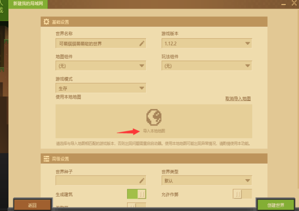 4.之后回到我的世界中国版导入地图,在多人游戏-->我的局域网-->新建局域网世界-->导入本地地图