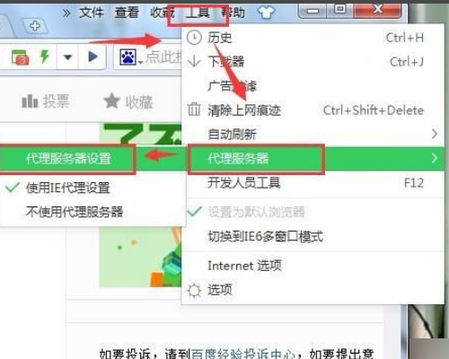 1、首先我们先找一个免费的代理ip,然后在浏览器中找到工具中的代理服务器。