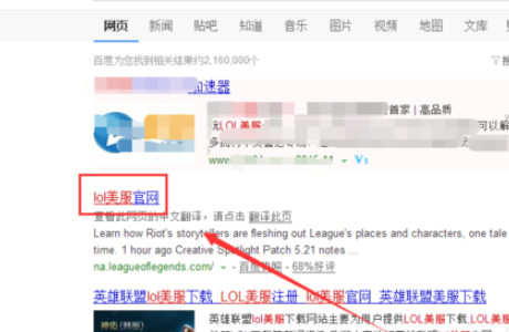 1、首先打开浏览器,百度搜索LOL美服。然后找到官网点击进去。