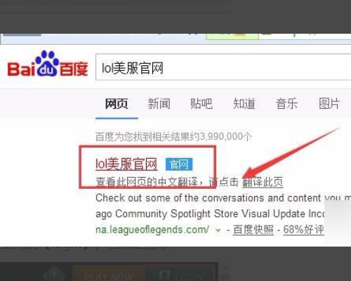 4、然后在搜索lol官网,注意一定要带有官网字样的哦。