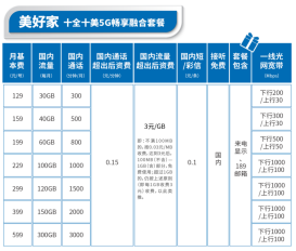 你好,电信的美好家-十全十美5G畅享融合套餐,手机流量套餐+宽带组合,可选129档、159档、199档、229档、299档、399档、599档。