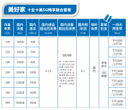 599档享1000M宽带,包含300G国内流量和3000分钟国内通话;