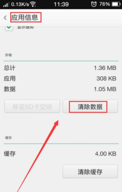 4、找到“微信”程序后,在“微信”程序的界面信息中点击“清除数据”。