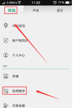 2、找到设置界面中的“应用程序”选项,点击进入。