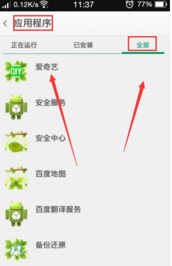 3、注意左上方和右上方的“应用程序”和“全部”按钮。在确保自己进入应用程序界面之后,点击“全部”进行程序选择。