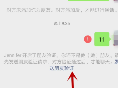 1、首先出现“对方未添加你为好友添加后才能通话”,这时继续给对方发送信息,然后点击‘发送朋友验证’把对方加回来。