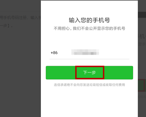 2、打开后,你需要用你的手机号注册。输入手机号码后,点击“下一步”。