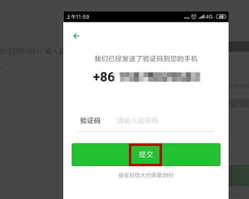 3、然后系统会发送验证码,输入验证码,点击【提交】。