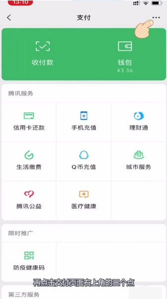 2、再点击支付页面右上角的三个点,如下图所示: