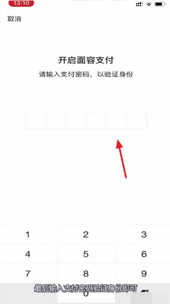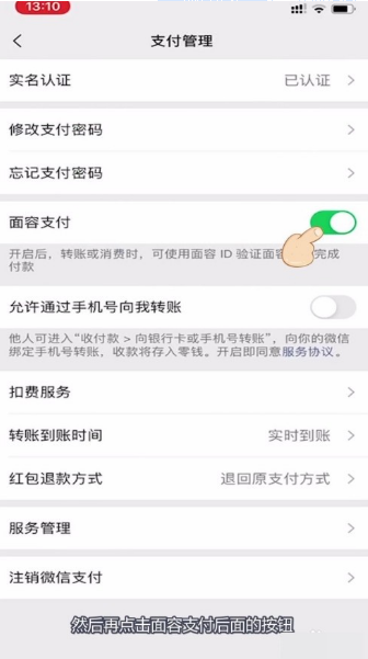 3、然后再点击面容支付后面的按钮,如下图所示:
