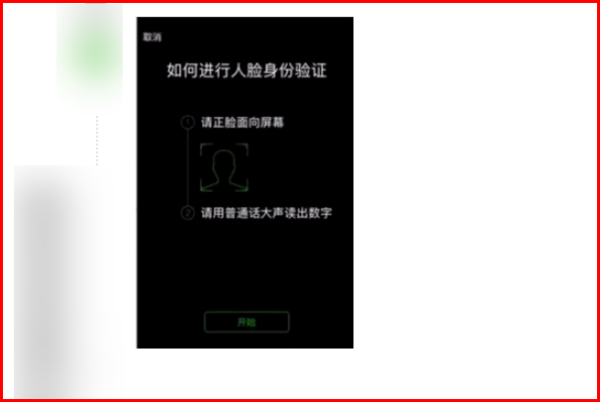 7、进入如何进行人脸识别验证界面,点击【开始】按钮,然后根据页面提示,正脸面向屏幕,用普通话大声说出屏幕上的数字,等待识别成功,完成自助解封。