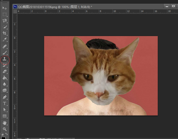 8、接着发现猫头够大之后人头还是露出一点,如下图所示。