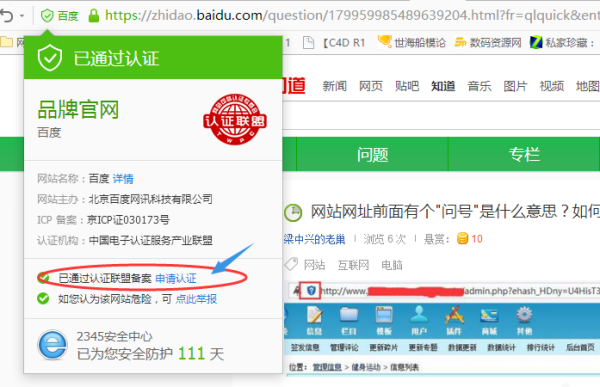 表明网站未经过认证