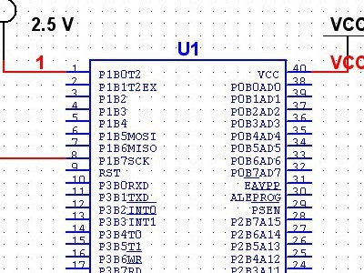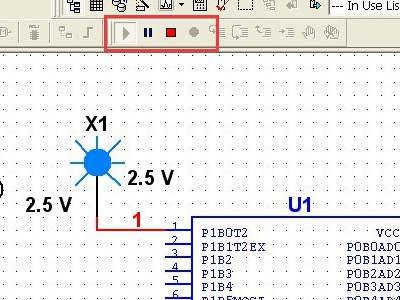 4、MCU设置好后画好电路图,为了简单展视,这里显示两灯,交换闪亮,电路图如图片。