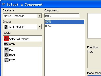 2、选择单片机类型,支持805X和PIC类型,还提供RAM、ROM使用。