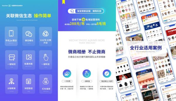 也就是转化了,围绕产品做内容的输出,目的就是给客户种草,我们接着以上面的那个美妆品牌举例,日常在自己的私域内会做专享的营销活动或商品套装,以及日常的内容输出做的种草来促进客户下单,这里的转化平台有两个,第一个是客户来前的平台,第二个就是私域的小程序微商城,私域的主要转化在小程序,因为客户方便,且有比其他平台要优惠的活动,这里很多朋友们都会问我的一个问题,如果搭建一个小程序微商城麻烦吗,建议可以看下图可以了解下详请,需要案例借鉴可以在淘宝去搜索一下店铺看下,明子叫「微购科技」,接着往下讲。