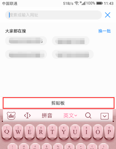 四、进入输入网址栏后,这时点击输入法的顶端的“剪贴板”。