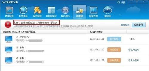 2.如果是wifi的主人。可以在电脑下载360防蹭网或者路由器卫士,以360防蹭网为例,安装后打开软件,启动防蹭网,这时会显示发现X台未知设备,正在与您使用同一网络,如果不想对方连接,把不属于自己的设备禁止连接wifi即可。