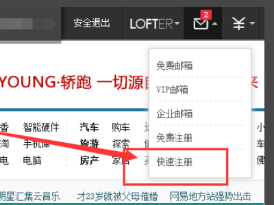 2、找到邮箱---选择快速注册邮箱。