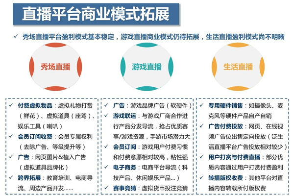 游戏直播的盈利模式主要也是靠用户打赏。但随着短视频的普及,大家开始把直播过的内容进行整理,再把优质的内容二次剪辑编辑变成短视频,发布在各个短视频平台,不仅能赚取二次收入(比如平台的佣金、游戏视频曝光会带来的二次打赏)也能通过这个方式来吸引更多的粉丝。所以游戏直播的玩法就比秀场直播上升了一步。