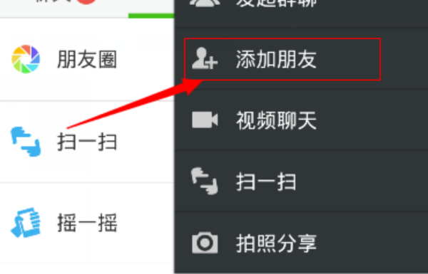 二、然后点击右上角三点标志,在跳出的小窗口中选择添加朋友。这跟添加好友是同一个位置。