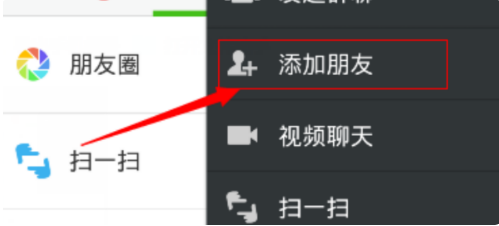 2、其次,点击右上角的三点标志,在弹出窗口中选择添加朋友。这和添加朋友是一样的。