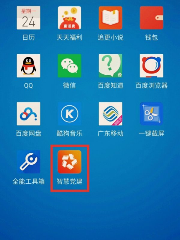 1、直接打开手机桌面,点击智慧党建APP进入。