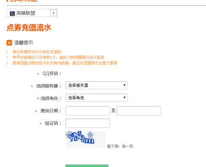 看lol充值记录方法 一、打开搜索引擎,搜索LOL官网 二、登录自己的帐号密码 三、拉到最下角,在省略处点击进入 四、打开点券充值流水 五、输入相对应的服务器,区服,日期,点击查询即可怎么看lol充值记录