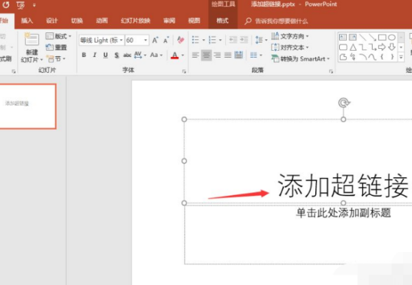 4、再次回到PPT文档可以看到要添加超链接的文字已经变为蓝色,当鼠标放上去的时候会提示按ctr键点击可以直接打开连接。