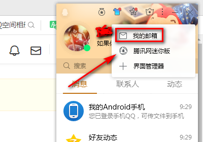 3、接着,完成上述步骤后,单击QQ界面上的“我的邮箱”选项,直接进入邮箱,如下图所示,然后进入下一步。
