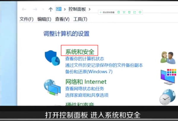 2、在那里,继续选择系统和安全跳转。