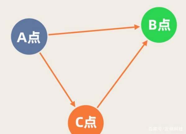 举个例子:两人从A点同时去B点,一个人从A点直接去往B点,一个人要绕道C点去B点。