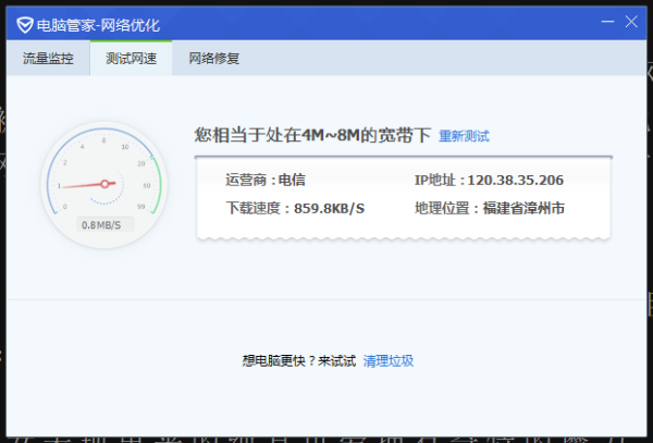 实际可能是下载服务器的带宽只有1MB或者文件分包传输过程中有的数据包出现了拥堵。宽带怎么测速才准确?宽带测速的目的在于诊断宽带是否达标,从而诊断网络设备、光纤信号强度等问题。一般都是通过以下两种方法进行测速的:
