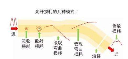 光纤材料和杂质会对光能进行吸收而引起损耗,光能以热量的形式消耗了;光纤材料中原子密度微起伏或光纤波导结构缺陷等会使光功率耦合泄露出纤芯外造成损耗;纤芯包层界面上存在的微小结构波动或光纤内部波导结构不均匀会造成损耗;
