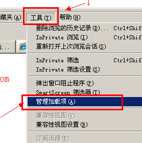 打开ie浏览器,单击ie浏览器工具栏 工具下的“管理加载项”;