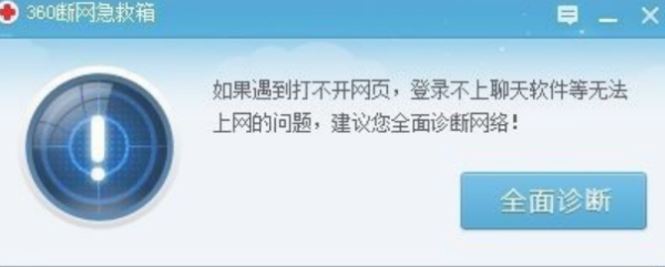 1、点击360断网急救箱,点击全面诊断。