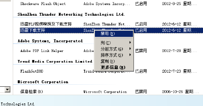 在打开的“管理加载项”窗口中,找到不需要使用的插件,右键选择禁用;