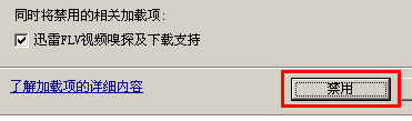 这时浏览器会提示确定禁止加载项的提示,选择“禁用”按扭即可。