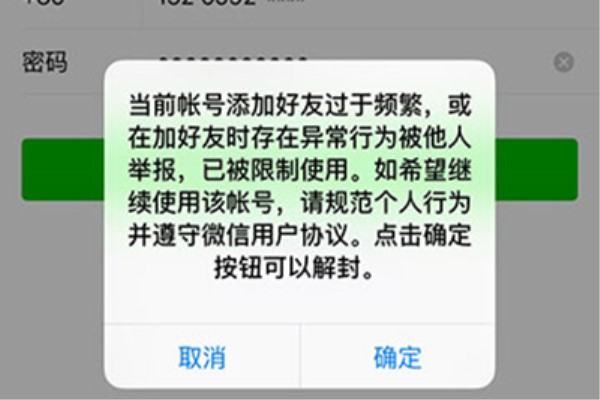 4、当前账号添加好友过于频繁,或在加好友时存在异常行为被他人举报,已被限制使用。