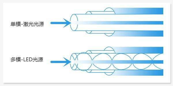 多模态发光器件是LED,光谱线宽,光波不纯,光的传输色散,传输距离的小。