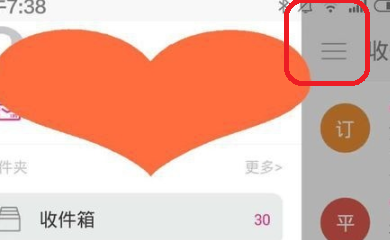 2.打开收件箱页面后,打开上面的三个横线图标。