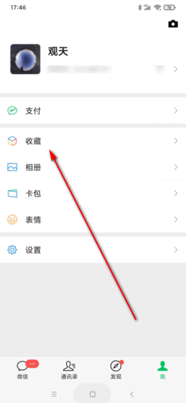 1、首先打开手机微信,进入到微信之后切换到“我”页面,接着选择“收藏”进入到收藏页面。