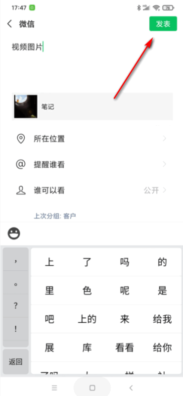 微信朋友圈视频个和图片怎样同时发?