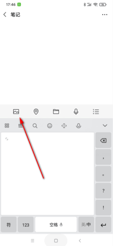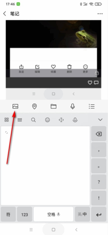 6、回到笔记页面后,再次点击输入栏上的图片图标,如图所示。