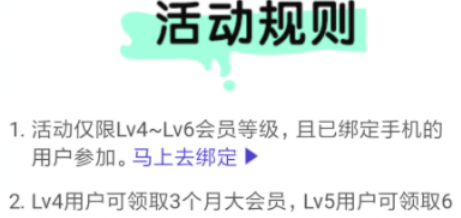 5、点击阅读可以看到活动规则,不同等级可以领取不同时长的大会员时长。