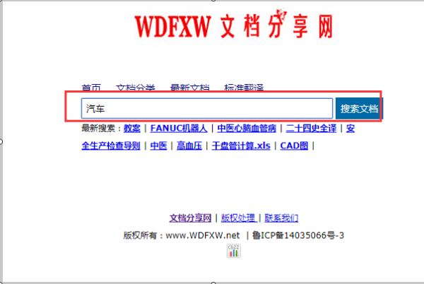 2、进入该网址后,在网页的搜索栏输入需要下载的文档名称,搜索文档。