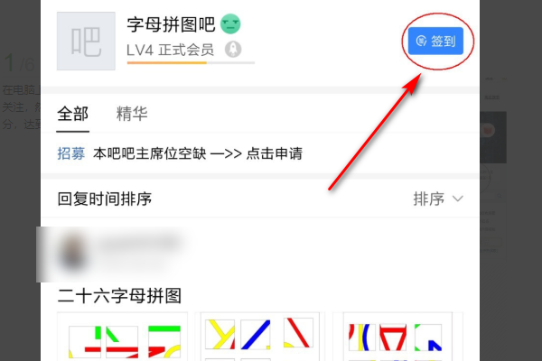 1、在电脑上打开进入贴吧,首先点击关注,然后点击签到就可以获得积分,达到一定积分就可以升级。