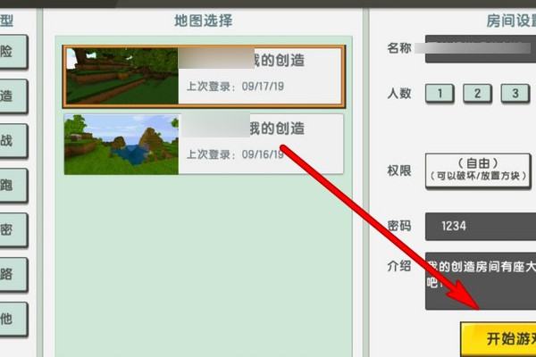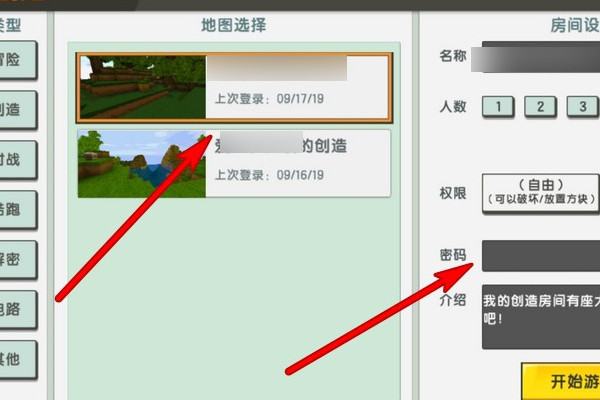 3、选择地图,对游戏房间进行设置,同时设置密码。