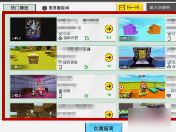 1、进入迷你世界的联机大厅,然后点击一个感兴趣的地图。