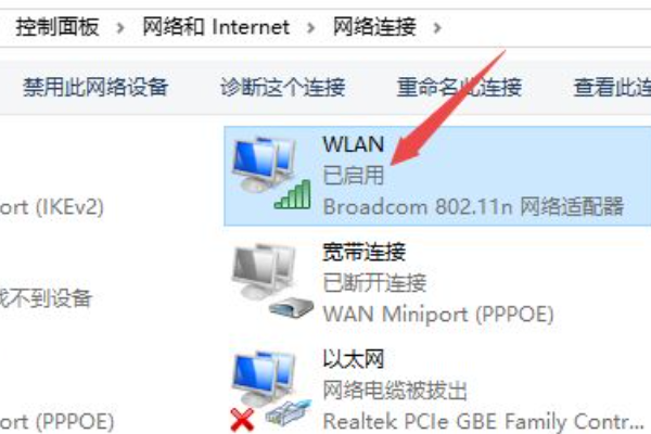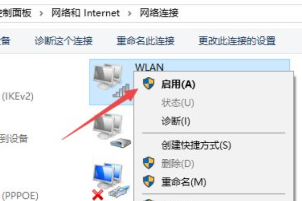 无线未连接有红叉是因为WLAN被禁用了,需要右击启用,详细步骤: